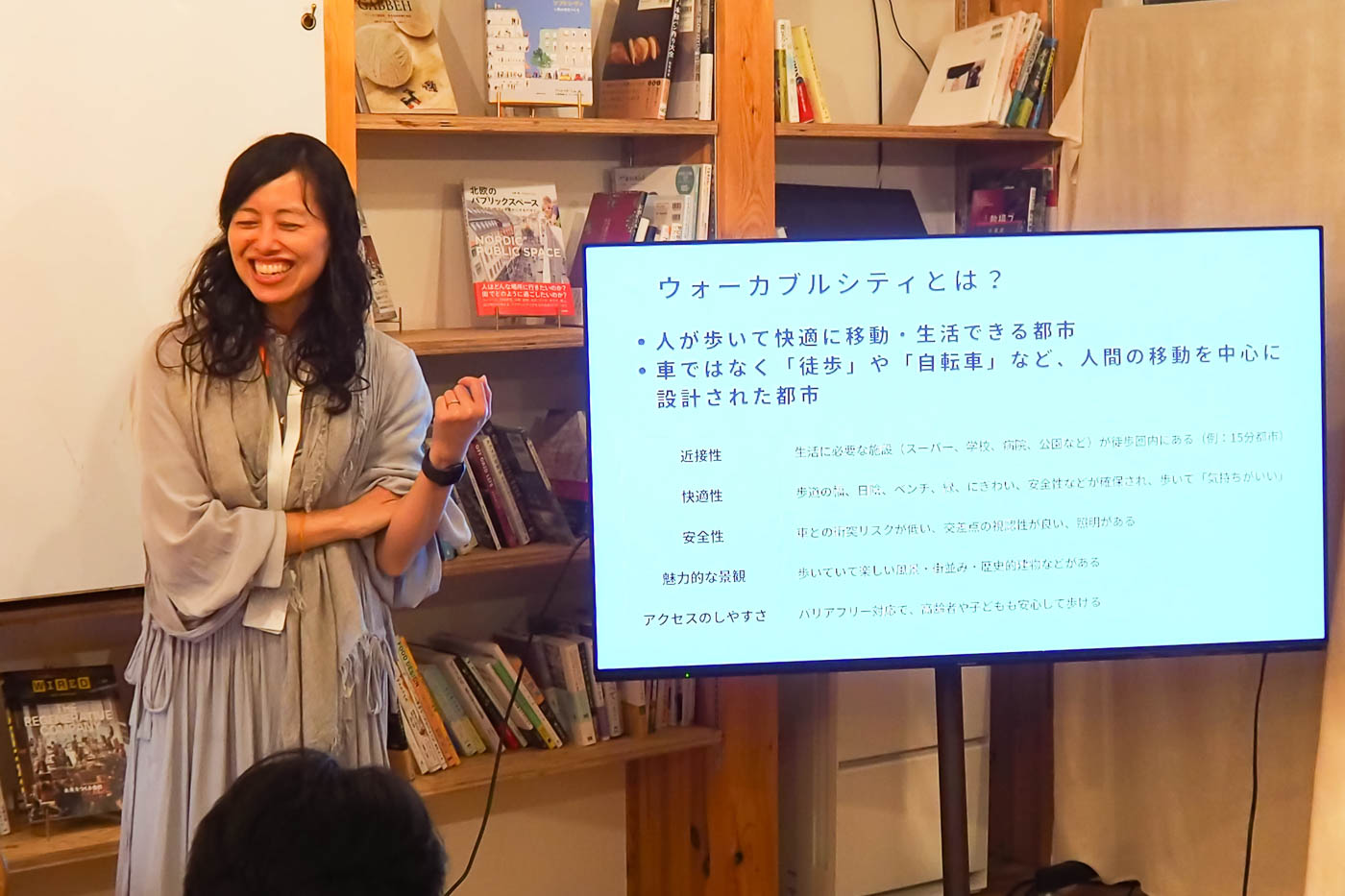 ウォーカブルシティについて説明する実行委員の岩濱サラさん