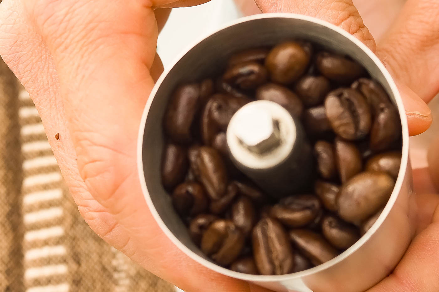 コーヒーを入れる道具はミニコンロと、ポットのような形をしたパーコレーター。豆は「エチオピア」だそうです。しばらくすると、パーコレーターからコーヒーの香りが漂ってきました。